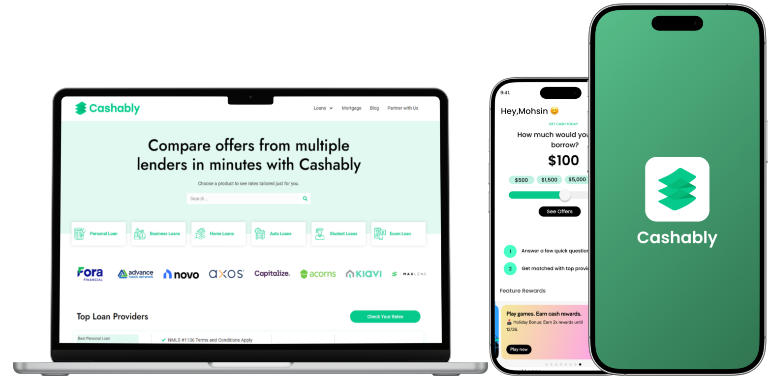 Access loan comparisons, rate checks, and financial tools on-the-go through the Cashably mobile app available on iOS and Android.