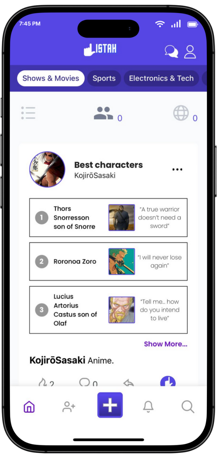 Listah is a social platform where people share Top 5 lists across music, sports, food, and entertainment, sparking fun conversations and debates. Connect with others, suggest edits, give Heat Checks, and discover the hottest lists of the day — all in one lively community.